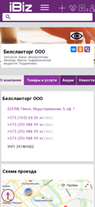 | AI-анализ | The portal 'Belslantorg OOO' is a Belarusian business-to-business marketplace specializing in automotive parts and accessories, including tires, batteries, filters, oils, hydraulic fluids, and bearings. The company is located in Pinsk, Belarus, at Industrialnaia Street 5, Office 1. Contact information includes multiple phone numbers with the country code '375' and the area codes '165' and '29', as well as the Unified State Register of Enterprises number '291469422'. The business operates from Monday to Friday, 9:00 AM to 6:00 PM, with Saturdays and Sundays being closed. |