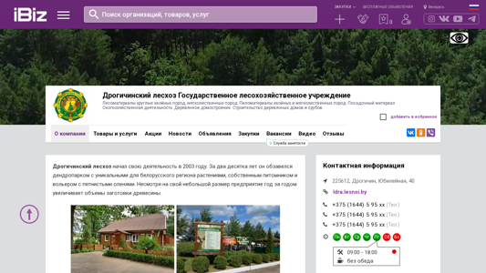| Название / Заголовок | Дрогичинский лесхоз Государственное лесохозяйственное учреждение - Лесоматериалы круглые хвойных пород, мягколиственных пород. Пиломатериалы хвойных и мягколиственных пород. Посадочный материал. Охотхозяйственная деятельность. Деревянное домостроение. Строительство деревянных домов и срубов.. 225612, Дрогичин, , Юбилейная, 40 |