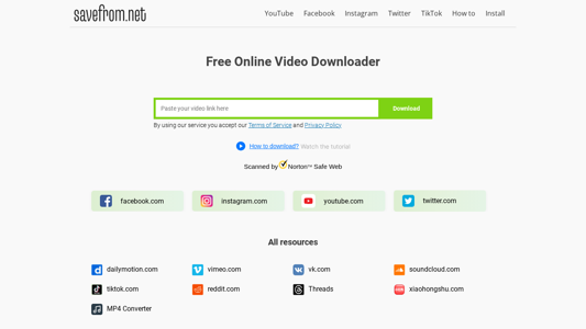 | AI-анализ | This online resource, SaveFrom.net, is a free video downloader that allows users to download videos from popular platforms in various formats and resolutions. The website's description indicates it is the leading online video downloader, offering a simple and straightforward way to save media from YouTube, Facebook, Instagram, Twitter, TikTok, and other platforms without installing complex software. The tool works seamlessly across desktop computers and mobile devices, providing a user-friendly interface for downloading YouTube videos, entertainment shows, sports highlights, and more. For faster workflow, a Chrome browser extension is available for one-click downloading. SaveFrom.Net preserves original quality standards, delivering crystal-clear MP4 downloads that maintain their source resolution and clarity. |
