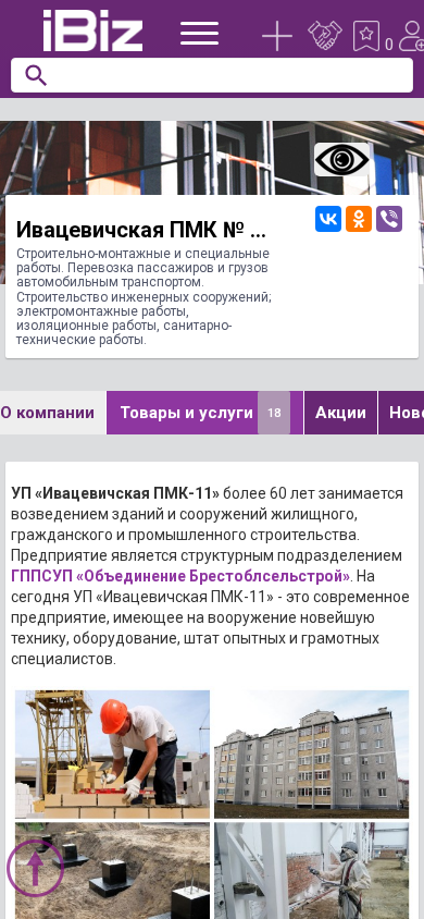 AI-анализ | The web project "Ivacevichskaya PMK No. 11 UP" is a construction and specialized works company offering transportation of passengers and goods by automobile. They provide engineering construction services, including electrical, insulation, and sanitary work. The company is located in Ivacevichi, Belarus, at Lesnaya 5. They offer a wide range of construction services, including new building construction, and are a structural division of the Belarusian enterprise "Ob'edinenie Brestoblselstroy". The company's website provides information on their company, products and services, and features a portfolio of completed projects, such as residential complexes, schools, and hospitals. |