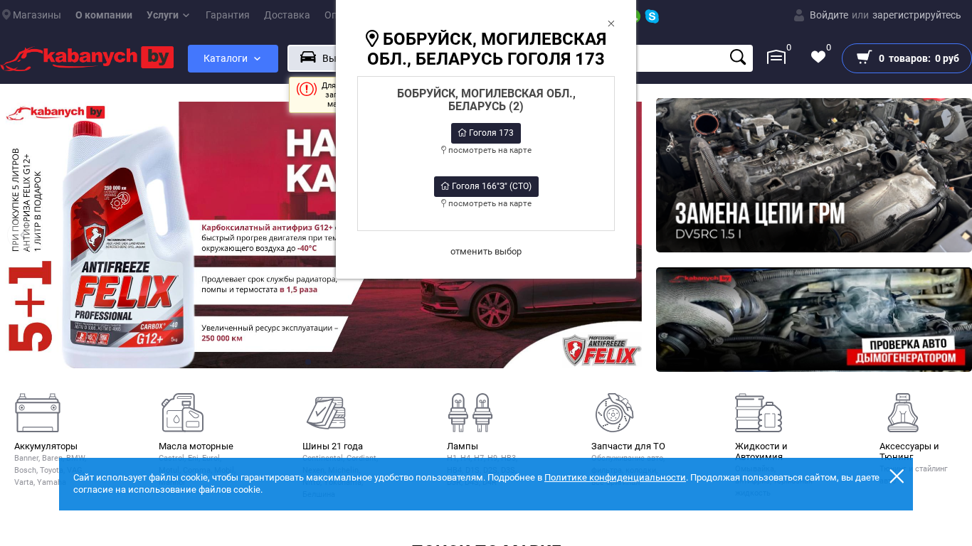 | SEO-описание | Интернет-магазин автозапчастей в Бобруйске и РБ. Запчасти для иномарок. Kabanych.by | Кабаныч бай |