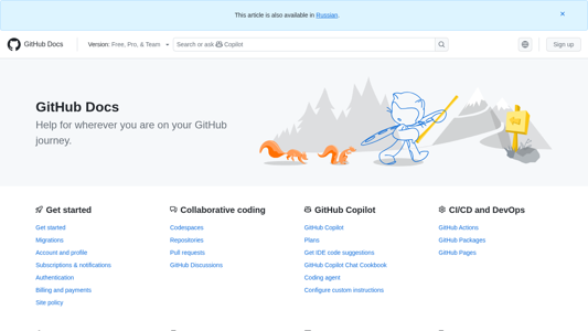 | AI-анализ | language: en The portal GitHub Docs is a comprehensive resource for users, developers, administrators, and all other GitHub product users. The site offers documentation on how to get started, troubleshoot issues, and make the most of GitHub's features. With a focus on providing clear and concise information, GitHub Docs covers a wide range of topics, from account and profile management to collaborative coding and project management. The site includes sections on GitHub's products, such as repositories, pull requests, GitHub Discussions, GitHub Copilot, and security features. Additionally, GitHub Docs provides information on various GitHub tools, including the GitHub CLI, GitHub Desktop, and GitHub Mobile. The site is available in multiple languages and includes a search function for easy access to information. GitHub Docs also features a Copilot tool for quick answers to |