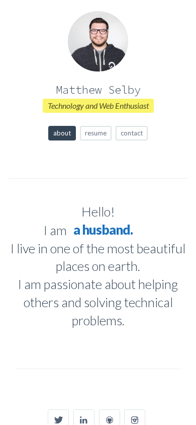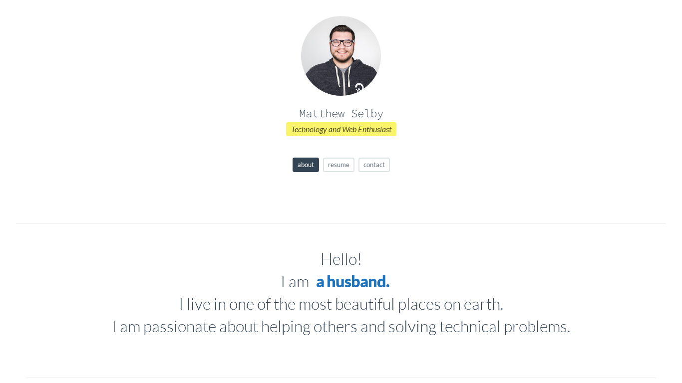 | AI-анализ | The website is a personal blog and resume of Matthew Selby, a technology and web enthusiast. The title is "Matthew Selby – Technology and Web Enthusiast." The description includes keywords such as "web," "work," and "WordPress." Selby mentions his experience as a web developer, consultant, and technical support specialist. He has worked for Nuvolum, Flywheel, PBHS INC., and Geek Squad. Selby also mentions his education in web development from Team Treehouse and WordPress development and marketing from Sonoma State University. |