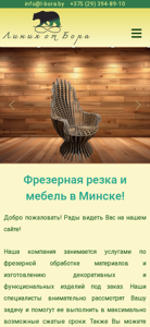 | AI-анализ | The website is for a woodworking and furniture manufacturing company based in Minsk, Belarus. The company offers custom fretwork (carving) and manufactures various types of furniture such as household and garden furniture, screens, decorative panels, facades, and partitions. The site includes sections for 2D and 3D fretwork, gravure, and ready-made products, with prices and contact information provided. The homepage features a menu with options for home furniture, garden furniture, screens, decorative panels, partitions, and prices. The company also offers custom-made products. The domain name is 'l-bora.by'. |