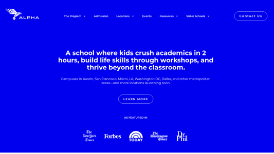 | SEO-описание | Discover Alpha School's AI-powered 2 Hour Learning model. Empower your child to excel at academics while developing real world skills and passions. |