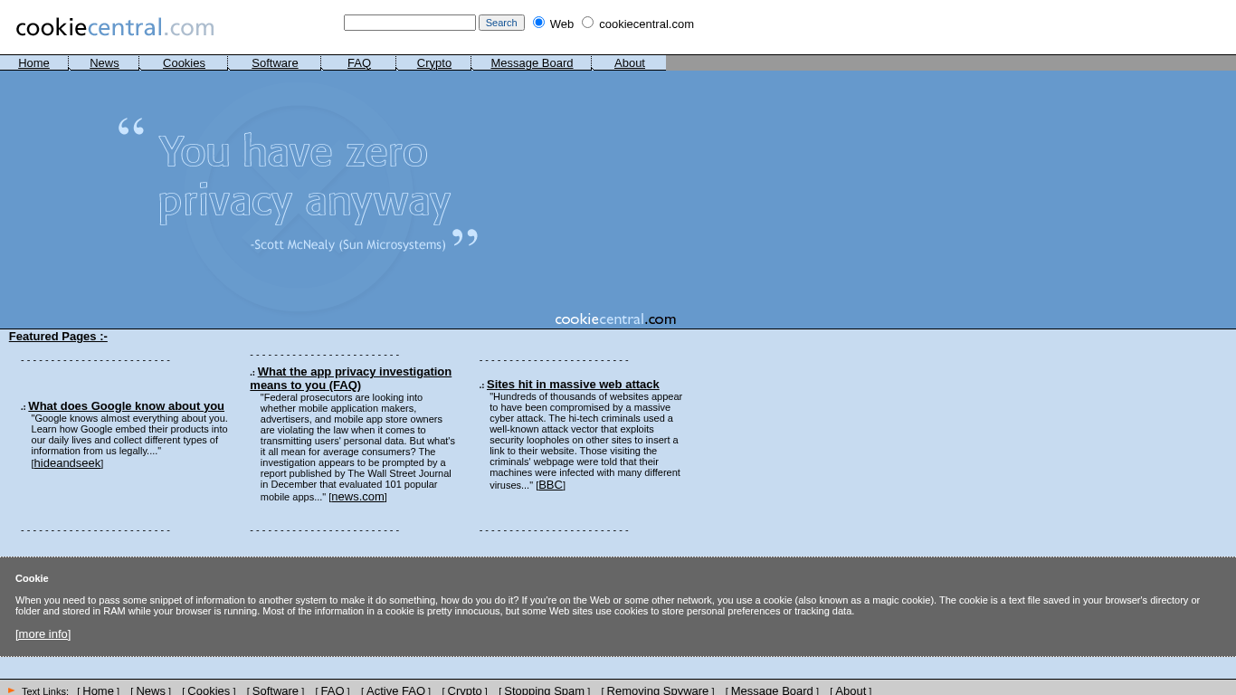| AI-анализ | language: EN category: Technology subcategory: Cookies This website, titled "Cookie Central," primarily focuses on the topic of cookies in the context of the web. It provides information about various types of cookies such as HTTP and Javascript cookies, as well as persistent cookies and CGI cookies. The website includes sections on Javascript Cookies, Java HTTP Client Side Persistent Cookies, Magic Cookies, and The dark side of cookies. The website also features a message board and a FAQ section for users to ask questions and learn more about cookies. The homepage includes links to news articles related to cookies, software, and featured pages. The domain is in the .com top-level domain and is classified as a technology website with a subcategory of cookies. |