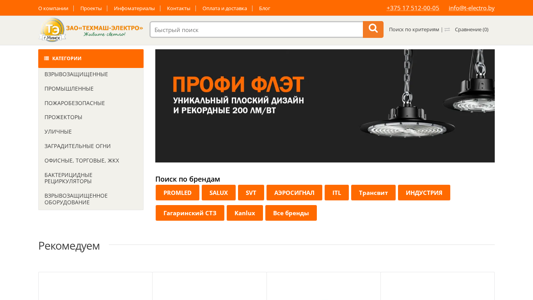 | AI-анализ | This website is an e-commerce platform for purchasing industrial, industrial-grade, low-voltage, and vzryvozashchishchennye (explosion-proof) LED lighting fixtures in Minsk, Belarus. The company, Techmash-Electro, offers a wide range of products including street, office, architectural, park, and industrial lighting. Their products come with a guarantee of up to 7 years. The website features a search function and allows users to compare products. Brands include Promled, Salux, SVT, and Industria. Users can contact the company for pricing and availability. |