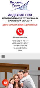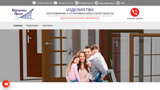| AI-анализ | --- The web project "КераниксПром" (ksprom.by) is a website dedicated to the production and sale of PVC products, including windows and doors, in the Brest and surrounding regions of Belarus. The site provides information on their manufacturing and installation services for various types of PVC doors and windows, as well as balconies and loggias. Contact details for the company include phone numbers and email addresses, along with a Viber messenger option. The site also features a product catalog showcasing PVC windows, metal and wooden doors, and balconies and loggias. A quality control system is in place, with a certificate from the Belarusian Chamber of Commerce and Industry. The site offers quick service delivery and guarantees post-sales support. The company, OOO "КераниксПром," specializes in the production of PVC window and |