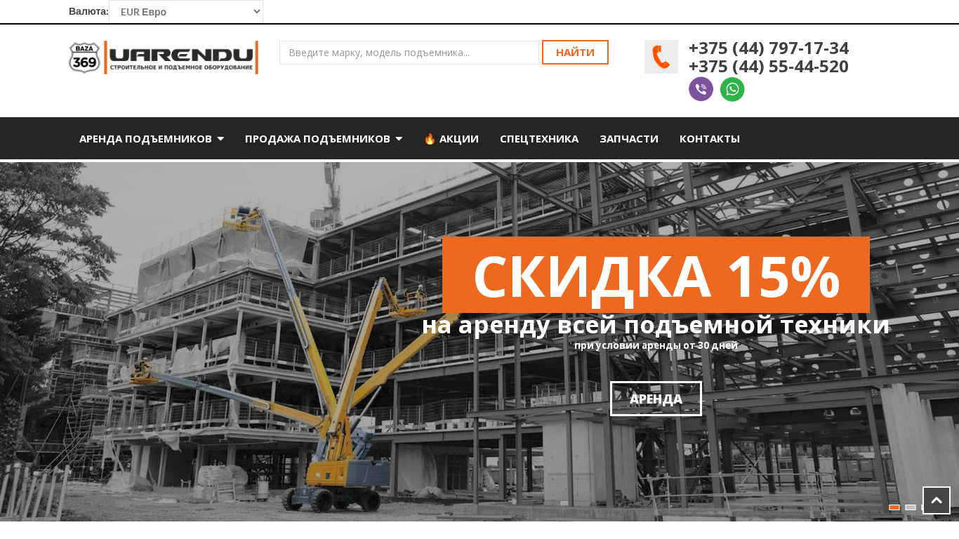 | SEO-описание | Аренда и продажа подъемников, спецтехники в Минске и по всей Беларуси, выгодные условия и цены, сервис, запчасти. Поиск и подбор подъемников по параметрам, высоте, грузоподъемности |