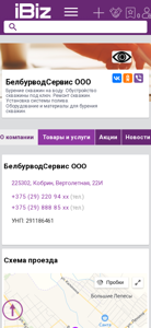 | Название / Заголовок | БелбурводСервис ООО - Бурение скважин на воду. Обустройство скважины под ключ. Ремонт скважин. Установка системы полива. Оборудование и материалы для бурения скважин.. 225302, Кобрин, , Вертолетная, 22И |