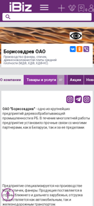 | AI-анализ | The website is for Borisovdrev OAO, a Belarusian company specializing in the production of medium density fiberboard (MDF), chipboard, and hardboard (HDF and HDF-NS). The website includes a map for directions, contact information, and the address of Borisovdrev OAO in Borisov. The company has been in operation for 30 years and offers various products and services related to wood processing, including furniture, OSB, plywood, and spruce boards. Borisovdrev OAO exports its products to countries near and far, with shipments made via both automobile and railway transport. The company has undergone significant modernization to maintain high-quality production and meet market demand, resulting in increased output and export potential. Borisovdrev OAO is a leading player in the Belarusian wood processing |