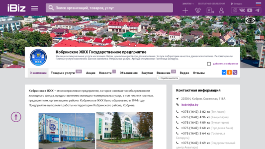 AI-анализ | The website is for Cobrinское ЖКХ State Enterprise, which provides housing and communal services to the population. It offers various services including the sale of concrete and cement mixtures for the public, laboratory services for wood fuel quality, pilings, paid public services, public bathing, ritual services, and equipment rental. Additionally, it has a hotel named Belarus and provides utility transportation, construction materials, towing services, landscaping, and other services. The company was established in 1944 and serves the territory of the Cobrin district and the city of Cobrin. The website includes sections for company information, products and services, news, and job openings. The domain is kobrinskjkh.ibiz.by. |