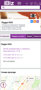 | Название / Заголовок | Падук ООО - Собственное производство продукции из сибирской лиственницы: террасная доска, палубная доска, вагонка, садовый паркет, мебельный щит.. 222720, Фаниполь, , Комсомольская , 12-26 |