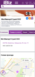 | AI-анализ | The portal is a business-to-business marketplace for the sale and purchase of various goods and services in Belarus, with a focus on metal construction, metal processing, and furniture manufacturing on metal frames. The company MetImportStroy OOO, located in Fanipol, Minsk region, offers the production of metal structures, commercial equipment, and metal-framed furniture under the brand LOFT4YOU. The website provides a scheme for reaching the company, business hours, and contact information. |