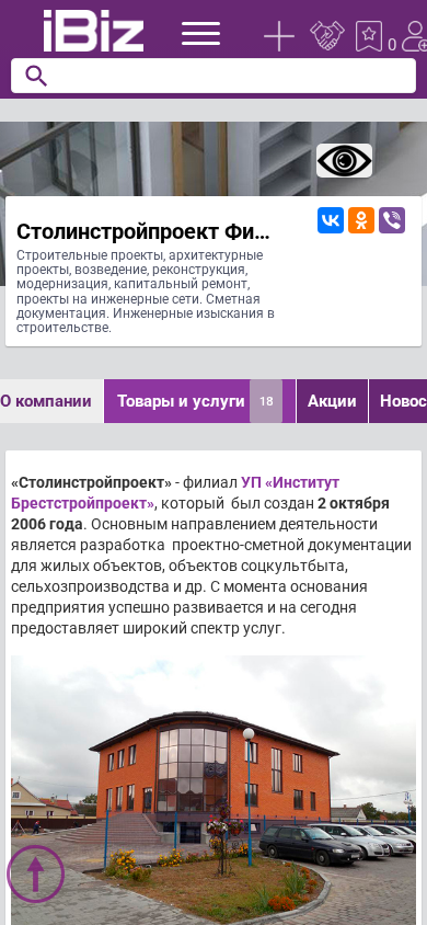 | Название / Заголовок | Столинстройпроект Филиал УП Институт Брестстройпроект - Строительные проекты, архитектурные проекты, возведение, реконструкция, модернизация, капитальный ремонт, проекты на инженерные сети. Сметная документация. Инженерные изыскания в строительстве.. 225503, Столин, , Терешковой, 35А |