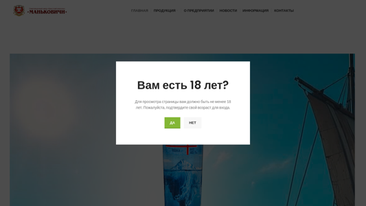 | AI-анализ | The web project "КУПП «МАНЬКОВИЧИ» - завод спиртоводочного производства" is a website for a spirits manufacturing plant based in Belarus. The company's products are available in Lithuania, Latvia, Germany, and Canada. Multiple generations of specialists at the plant have preserved and passed on centuries-old traditions of spirits production, resulting in competitive and high-quality products. The website provides information about the company, news, and contacts. It showcases various types of spirits, including vodka, brandy, cognac, liqueur, and infusions, with descriptions of their unique characteristics and ingredients. Some products, such as Black Currant and Lech vodka, Radvil brandy, and Ahnazar cognac, are specifically mentioned. The website is age-restricted, requiring users to confirm they |