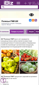 | AI-анализ | This online resource is a website for the agricultural business "Полесье-ГМИ ФХ" located in the Sтолинский region of Belarus. The company specializes in vegetable farming and has been known as a significant producer in the region for many years. The farm produces organic vegetables grown on the fertile soil of Belarus. "Полесье-ГМИ" offers a wide range of products including apples, cabbage, and tomatoes. The company sells high-quality produce at affordable prices and adheres to all state regulations while implementing international quality and safety standards. The website provides a map for visitors to locate the business and lists contact information, including phone numbers and operating hours. The site also includes sections for news, vacancies, and customer reviews. Companies in the agricultural sector and those seeking organic produce may find this resource useful. |