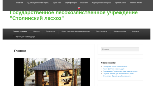 | AI-анализ | The web project "Государственное лесохозяйственное уchrezhdenie "Столинский лесхоз" (State Forestry Enterprise "Stolinsky Leshoz") provides information on the activities of the forestry organization, including forest management, certification, monitoring, and vacation offerings. The site features a menu with sections on the organization, leadership, news, and various districts and recreational areas. It also includes a section for radiological control and safety information. The domain is part of the .BY top-level domain for Belarus. |