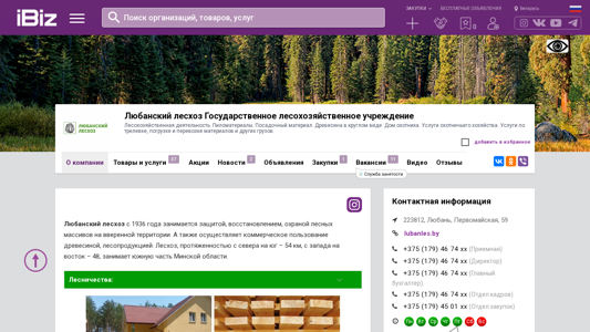 | AI-анализ | This website is for Lubansky Leshoz, a state-owned forestry enterprise located in the town of Lyuban', Minsk Oblast, Belarus. The website offers information about the company's forestry activities, including the sale of pilo materials, sawn timber, and round wood. Additionally, the website provides details on services related to tree cultivation, log loading, and transportation of materials and other goods. The company also offers hunting services and a hunter's cabin for rent. The website includes a map for directions, contact information, and addresses for various forestry outposts and their respective forest wardens. |