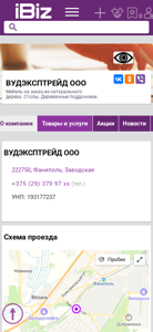 | AI-анализ | The web project "ВУДЭКСПТРЕЙД ООО" offers custom-made furniture from natural wood. Products include tables and wooden bases. The company's contact information, address, and a map for directions are provided. The business is located in Fanipol, Belarus, specifically at the address: 222750, Заводская. The operating hours are Monday to Friday from 9:00 AM to 6:00 PM without lunch breaks. The company can be reached by phone at +375 (29) 379 97 xx. The Unified State Register number for the organization is 193177237. |