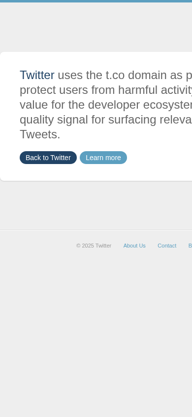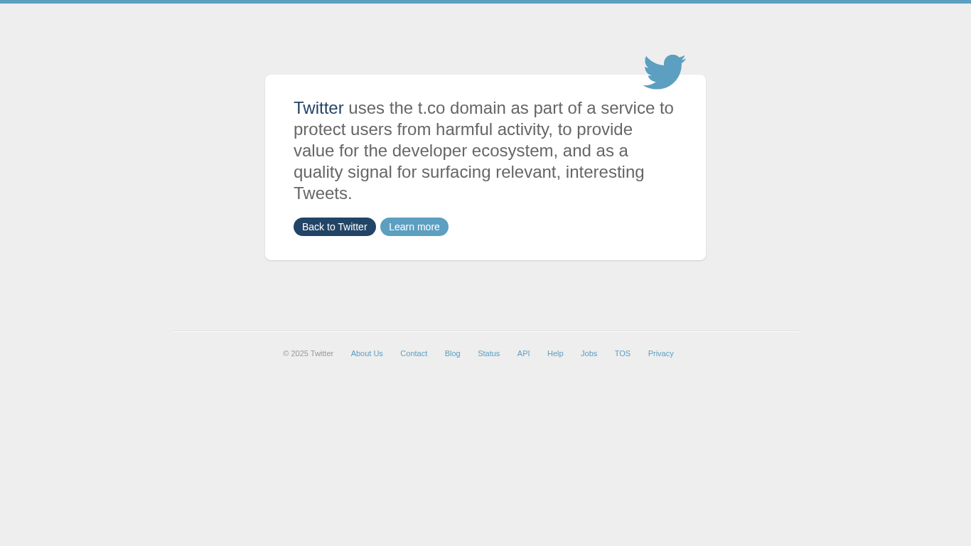 | AI-анализ | type: url  This online resource, t.co, is the domain used by Twitter as part of their service to protect users from harmful activity, provide value for the developer ecosystem, and act as a quality signal for surfacing relevant and interesting Tweets. The domain is used to shorten URLs shared on Twitter, ensuring user safety and enhancing the user experience by providing more context and transparency about the links being shared. The top words associated with this domain include Twitter, the, for, uses, domain, part, service, protect, users, from, harmful, activity, provide, value, developer, ecosystem, and, quality, signal, surfacing. |