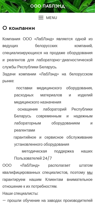 | Название / Заголовок | О нас - ООО Лаблэнд |