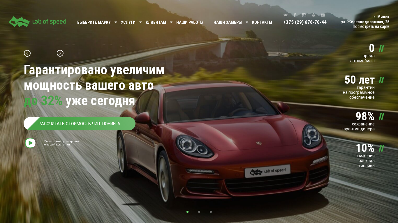 | SEO-описание | "Лаборатория скорости" выполняет профессиональный чип-тюнинг для всех автомобилей, начиная с 2000 года выпуска с бензиновыми и дизельными двигателями! Гарантия! |
