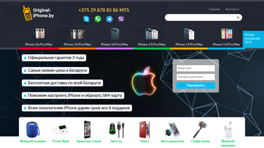 | AI-анализ | --- This website is an e-commerce platform selling original Apple iPhones, including models 5s, SE, 6s, 7, 8, X, XS, XR, MAX, 16/Pro/Max, 15/Pro/Max, 14/Pro/Max, 13/Pro/Max, 12/Pro/Max, and 11/Pro/Max. It offers delivery within Minsk and Belarus. The top keywords are "apple," "iphone," and various iPhone models, as well as related terms like "bluetooth," "screen," and "protection." The website also mentions various accessories such as power banks, screen protectors, and car holders. The unparsed URL includes a catalog of iPhones and contact information, along with offers of free gifts and discounts. The domain is "original- |
