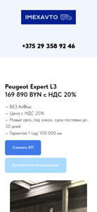 | Название / Заголовок | Купить Peugeot Expert L3 (2,0 HDI MT) с НДС в Минске — Продажа новых авто — ИмЭксАвто |