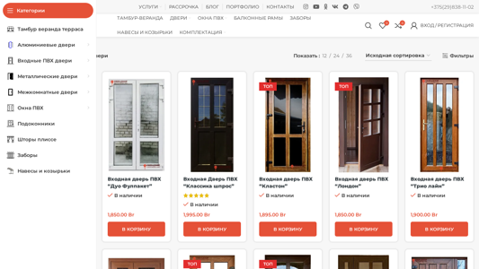 | AI-анализ | --- This online resource specializes in selling PVC entrance doors with excellent thermal and sound insulation, safety, and a wide range of models. The reliable plastic doors for home are available for purchase with delivery throughout Belarus. The product offerings include tempered glass doors, various door profiles, and metal doors for both residential and commercial use. Custom orders are also possible. The website features a blog, customer service, and a portfolio of completed projects. The service hours are from 08:30 to 20:00, Monday through Friday. The offerings include not only doors, but also window frames, canopies, and various accessories. The website provides a search function, account creation and login options, and a shopping cart. The available filters include price range, brand, and size. The brand 'OknaDoor' is one of the featured brands, and customers can add items for comparison. The site |