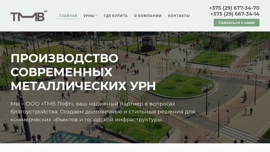 | SEO-описание | ⭐ Производство современных уличных урн от ТМБ Лофт. ✅ Широкий выбор моделей, изготовление на заказ, оптовые скидки. 🚚 Быстрая доставка по всей Беларуси. Заходите! |