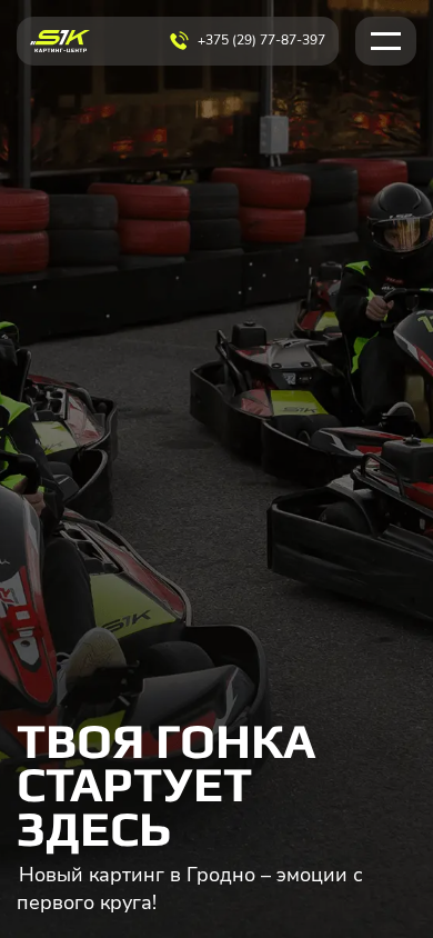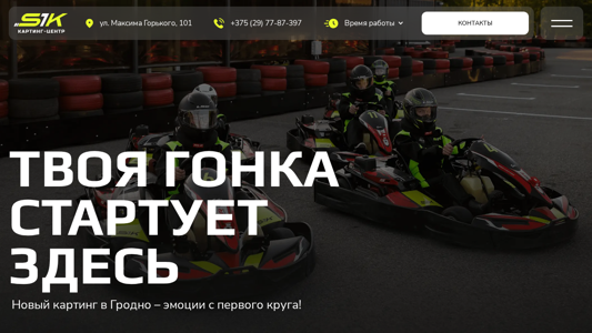 | AI-анализ | The website is for S1K go-karting center located at Maxim Gorky street, 101 in Grodno, Belarus. It provides information about the center, its track, kart rentals, prices, events, and contact details. The website offers discounts for birthdays and group bookings. The karting center has two types of karts - Sodikart LR5 for children aged 6 and above with a maximum height of 125 cm and Sodikart SR4 for adults with a minimum height of 165 cm. The maximum speeds for these karts are 50 km/h and 65 km/h respectively. The prices for kart rentals are 20 BYN for 10 minutes for children and 25 BYN for 10 minutes for adults, with discounts for group bookings and |