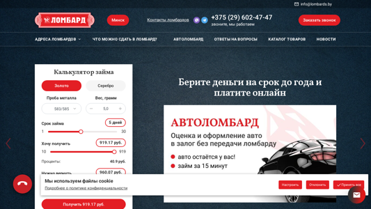 | Ключевые слова | Займы под залог золота и техники I Принимаем всё I 44 ломбарда I 7 дней в неделю I Низкая ставка I Займ за 5 минут I |