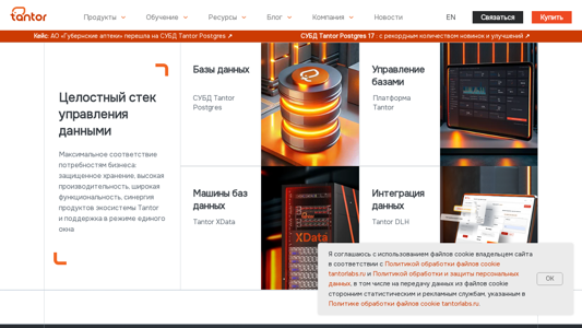 | Название / Заголовок | Российская СУБД Tantor: отечественные базы данных на PostgreSQL, профессиональная коммерческая система управления БД многопользовательская, разработка на русском языке |