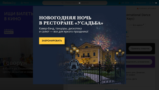 | AI-анализ | The web project International Dance House (Интернэшнл Дэнс Хаус) in Mogilev, located at ul. Tishki Gartного 22, offers contemporary dance classes with reviews, phone numbers, work hours, and a map for navigation on Relax.by. This center for contemporary choreography in Mogilev is popular for its various dance groups, including Evening, Weekend, Daytime, and Other groups, catering to adults, teenagers, and children. The center offers a range of sports sections, including dance classes, and features frequent viewings of the Govorun Center, the Center for the Development and Correction of Speech, and the Alliance educational center. The center's address, phone numbers, and route are provided, along with a 'First free trial lesson' promotion. The website contains 62 reviews, with one review |
