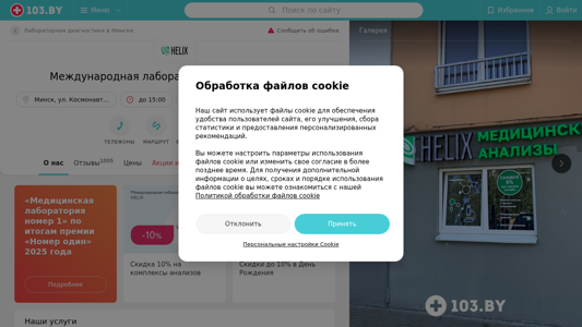 | AI-анализ | This online resource is the official website for the International Helix Laboratory located at 6, Cosmonauts Avenue in Minsk, Belarus. The site provides contact information such as phone numbers, operating hours, and customer reviews. It is part of the medical portal 103.by and offers a wide range of medical laboratory services, conducting over 1,500 tests for diagnosing various health conditions and monitoring overall health status. The laboratory is equipped with modern equipment and automated analysis systems, ensuring accurate and efficient diagnostic results. Their team of experienced specialists adheres to strict quality control processes to maintain high standards of laboratory analysis. The site also features customer testimonials, pricing information, and details about their various services, including general analyses, biochemical tests, vitamin assessments, and pharmaceutical monitoring. The laboratory has multiple locations across Belarus and offers a mobile service for convenient |
