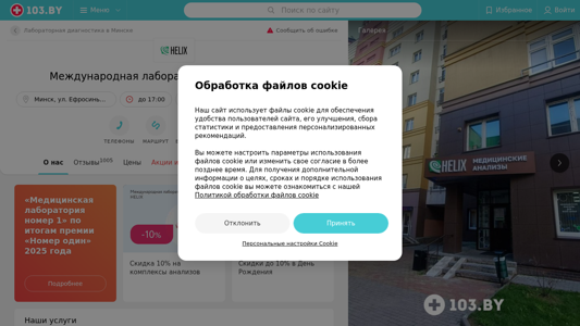 | SEO-описание | Международная лаборатория HELIX (ХЕЛИКС) Минск ул. Ефросиньи Полоцкой 1 – телефоны, время работы, отзывы и схема проезда в каталоге медицинского портала 103.by. |