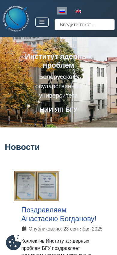 | AI-анализ | --- The portal inp.bsu.by is the official website of the Belarusian State University's Institute of Nuclear Problems (NII ЯП БГУ). It provides information about the institute's administration, research departments, laboratories, ongoing projects, and publications. The institute focuses on fundamental and applied research in various fields of physics, including nuclear physics, theoretical physics, and materials science. Notable areas of study include the physics of high energy densities, nanomagnetism, and analytical research. The website also features information on the institute's scientific achievements, conferences, and contact details. The latest news includes congratulations to a young scientist, Anastasiya Bogdanova, for her award-winning presentation at the 'Molodezh' v nauke – 2025' conference, and an interview with the institute' |