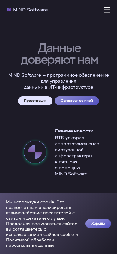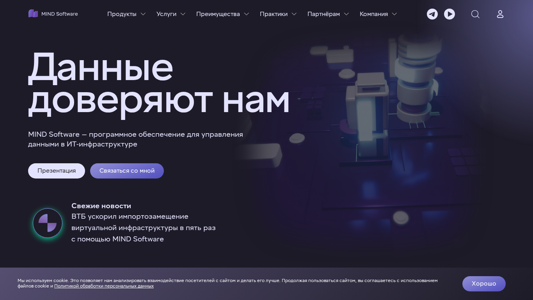 | AI-анализ | This online resource is dedicated to MIND Software, a company offering tools for migration and increasing fault tolerance of IT services for various popular virtual platforms. The website provides information about MIND Software's products and services, their advantages, and practices for partners. The company is trusted by major Russian IT companies. The website includes sections on data, presentations, support, and news. MIND Software offers a tool for data protection and guaranteed application restoration after any type of failures and crashes on any platforms and clouds. The tool also ensures seamless application transfer between various platforms and clouds. The website also features a reliable, high-performance data storage solution, as well as expert assistance from a team of experienced professionals in virtual infrastructure transfer and building fault-tolerant solutions. The website is listed in the TAdvisor catalog and provides links to articles on the Russian software market, digital transformation, and IT infrastructure migration. |