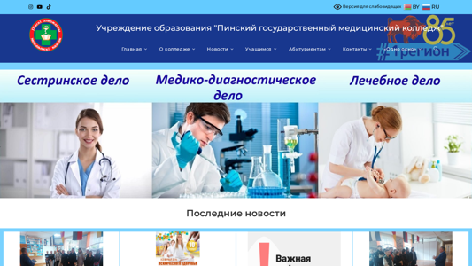 | AI-анализ | --- The portal 'Pinsk State Medical College' (formerly a nursing school) was established in February 1940. The website provides information about the college, its history, educational programs, laboratory facilities, and admission process. Keywords related to the site include 'news', '2025', 'detailed information', 'September', 'October', 'college', 'education', 'Pinsk', 'state', 'medical', 'OPKIP', 'laboratories', 'BRSM', and 'information'. The site also offers content in various languages such as Belarusian, English, and Russian. |