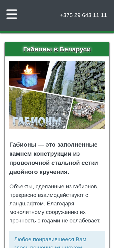 | SEO-описание | Габионы в Минске, Бресте, Гродно, Гомеле, Витебске. Мы можем изготовить любое понравившееся вам здесь решение! |