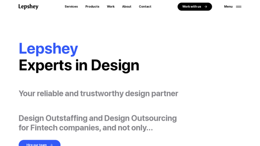 | AI-анализ | This online resource, Lepshey.com, is a design agency specializing in outstaffing and outsourcing for Fintech companies. The website's title is "Lepshey – Experts in Design" and its description reads "Design Outstaffing and Design Outsourcing for Fintech." The top keywords on the site include "design," "and," "your," "for," "hour," "hours," "order," "lepshey," "we," "will," "from," "outstaffing," and "support," with "designers" and "work" following closely behind. The site offers design services for various products and projects, including web product branding, website design, marketing design, and Webflow development. The team consists of a designer, art director, and project manager, and they have been in operation since 2007 with a focus on Fin |