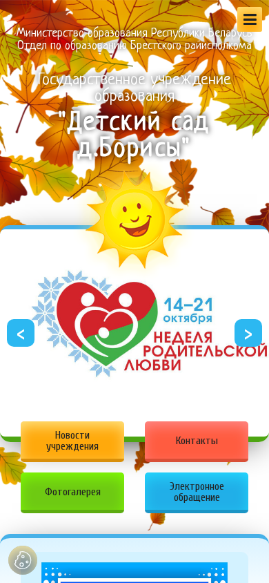 | AI-анализ | The web project "Детский сад д. Борисы" (Borisy Kindergarten) is a Belarusian educational institution focused on early childhood development. The title and keywords suggest that it is a kindergarten or daycare center located in Borisy. The top words indicate that the website provides information about the institution's schedule, leadership, telephone directory, administrative procedures, vacancies, enrollment, situation assistance, history, licensing, and free space availability. The website also offers a photo gallery, news, contacts, and information about the kindergarten's groups and safety rules. The domain is registered under the .BY top-level domain and the website is part of the roobrest.gov.by network. |