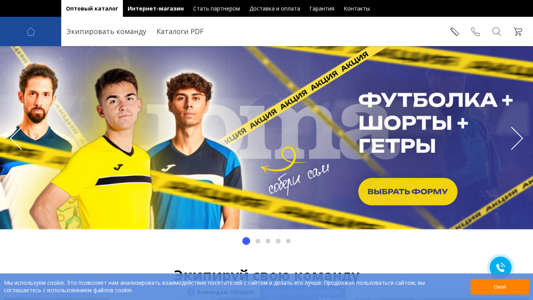| AI-анализ | This website is an online sports equipment store specializing in Joma brand products. It offers professional sports equipment and team uniforms for purchase on demand. The website provides an opt-in catalog for bulk purchases and a retail online store for individual customers. The store carries a wide range of items including team uniforms, shirts, shorts, pants, shoes, goalkeeper equipment, and various accessories. The website is available in multiple Russian cities and offers delivery and payment options. The store also features a section for discounted polyester products and a constructor for custom team uniform design. The website uses cookies for site analysis and has contact information and a reverse call-back feature. The store's top keywords include 'sports equipment', 'team uniforms', 'Joma brand', 'bulk purchases', and 'discounts'. |