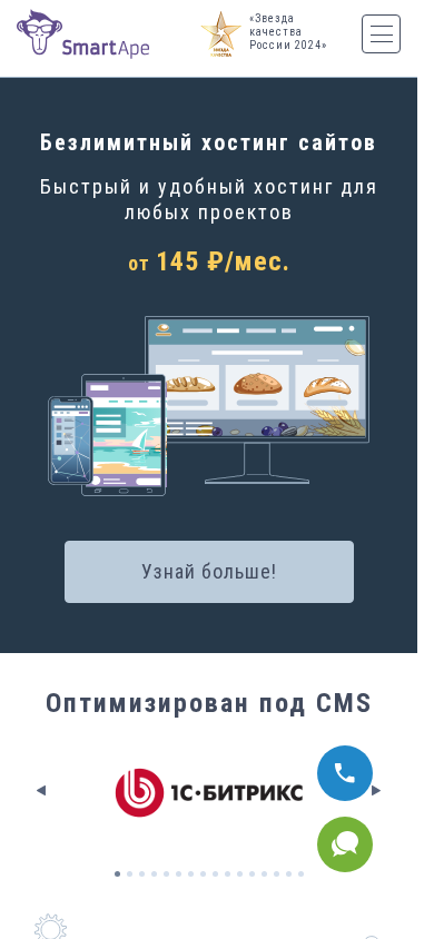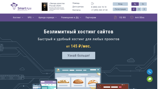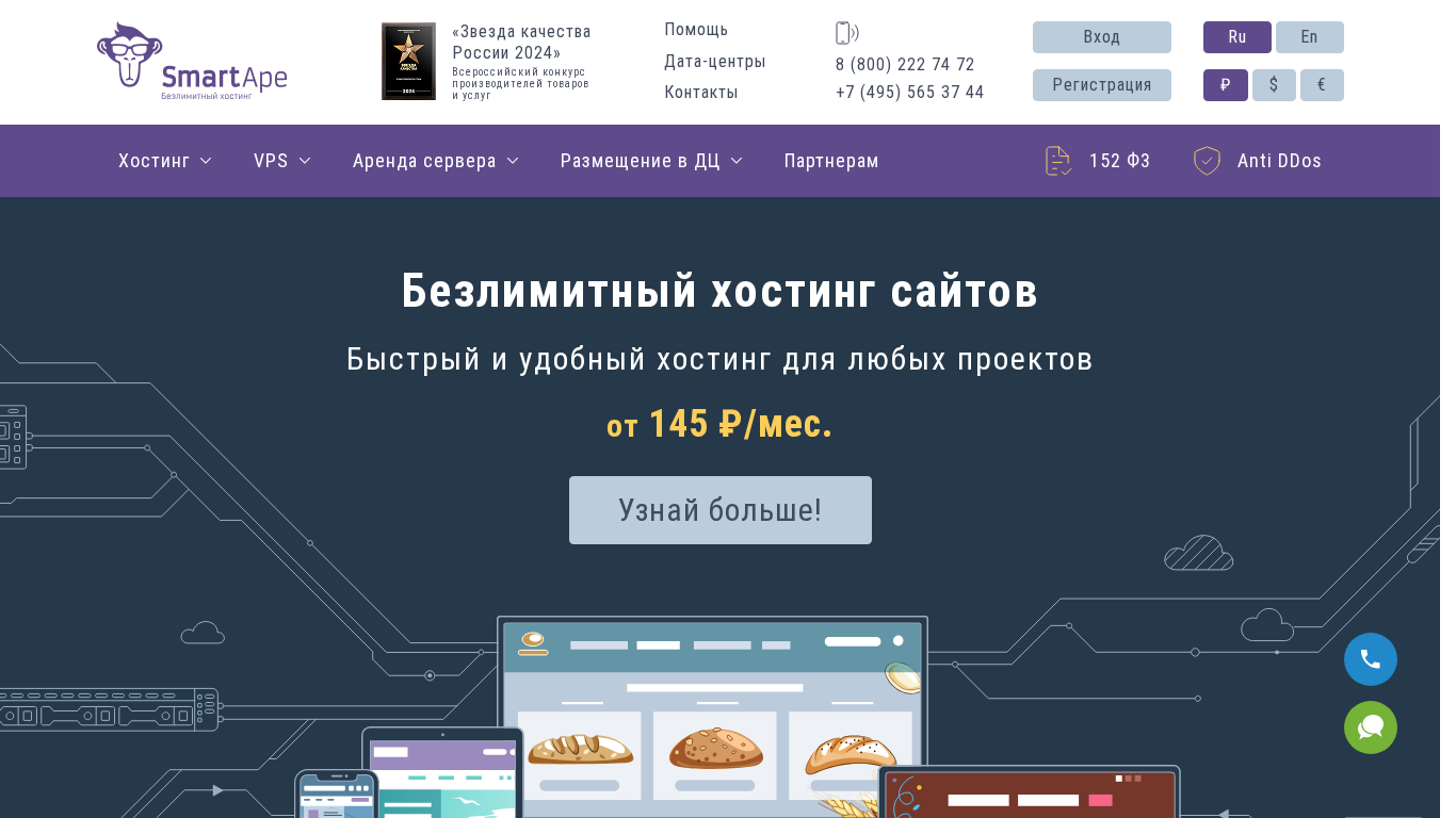 | Название / Заголовок | Безлимитный хостинг сайтов SmartApe на SSD – Отличный хостинг с безлимитными ресурсами в России. Неограниченный хостинг. |
