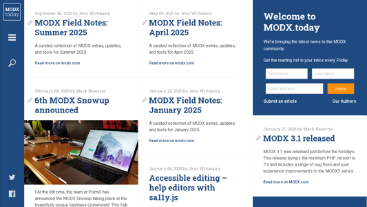 | AI-анализ | This online resource, modx.today, functions as a daily(-ish) online magazine dedicated to the MODX Content Management Platform. The website provides news, insights, and reviews about all things MODX. The description section indicates that the website offers a curated collection of MODX extras, updates, and tools. The homepage includes a search feature, links to social media platforms such as Twitter and Facebook, and a most read section. The website is authored by individuals named Jens Wittmann and Mark Hamstra, and there is an option for users to submit articles. The RSS feed is also available. The website's content covers topics such as MODX Snowup, MODX 3.1 release, and accessible editing using sa11y.js. |