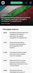 | AI-анализ | --- This website, titled "Новости Беларуси. МИР 24," provides the latest news on Belarusian politics, economy, society, events, culture, science, and sports, along with weather forecasts. The website offers preexisting programming, articles, videos, and interactive content. It also features a direct broadcast section, company information, and contact details. The topics covered include international summits, health issues, education, scientific discoveries, and weather conditions. The website includes news on the restoration of Brest Fortress and the closing ceremony of the student olympiad in Vitsebsk. Other stories cover President Alexander Lukashenko's participation in a meeting of CIS leaders, the high number of people seeking medical help in Minsk due to tick bites, and a large edible mushroom discovery. The website also features articles on literary works, |