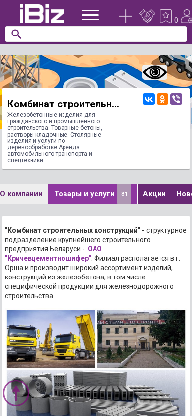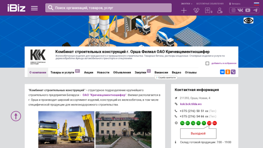 | Адрес | г. Орша Филиал ОАО Кричевцементношифер - Железобетонные изделия для гражданского и промышленного строительства. Товарные бет |