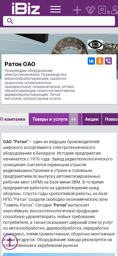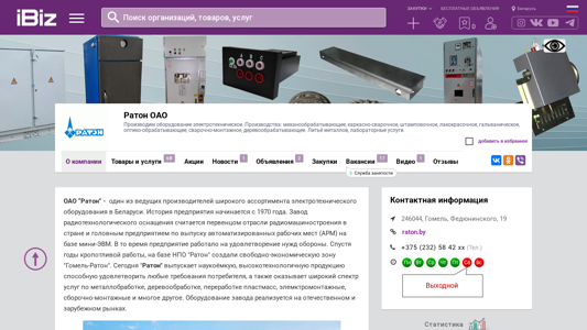 | Название / Заголовок | Ратон ОАО - Производим оборудование электротехническое. Производства: механообрабатывающее, каркасно-сварочное, штамповочное, лакокрасочное, гальваническое, оптико-обрабатывающее, сварочно-монтажное, деревообрабатывающее. Литьё металлов, лабораторные услуги.. 246044, Гомель, , Федюнинского, 19 |