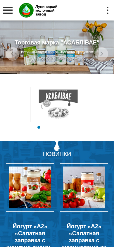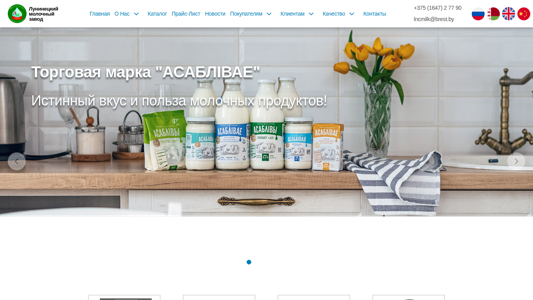 | AI-анализ | --- This online resource represents the official website of "Лунинецкий молочный завод" (Luninets Dairy), a Belarusian dairy company. The website offers information about the company, its history, quality policy, and anti-corruption measures. It also includes a catalog of products, price list, news for customers, and information on vacancies. The main product categories include yoghurts under the brand "АСАБЛIВАЕ" (Asabliavye) and slim milk. The website features news on new product releases, such as yoghurts with various toppings and a new type of milk. The company has received several awards for product quality and has a wide distribution network. The website includes contacts for customer inquiries and partnerships, as well as information on geographical coverage and tenders. The website is available at [ |